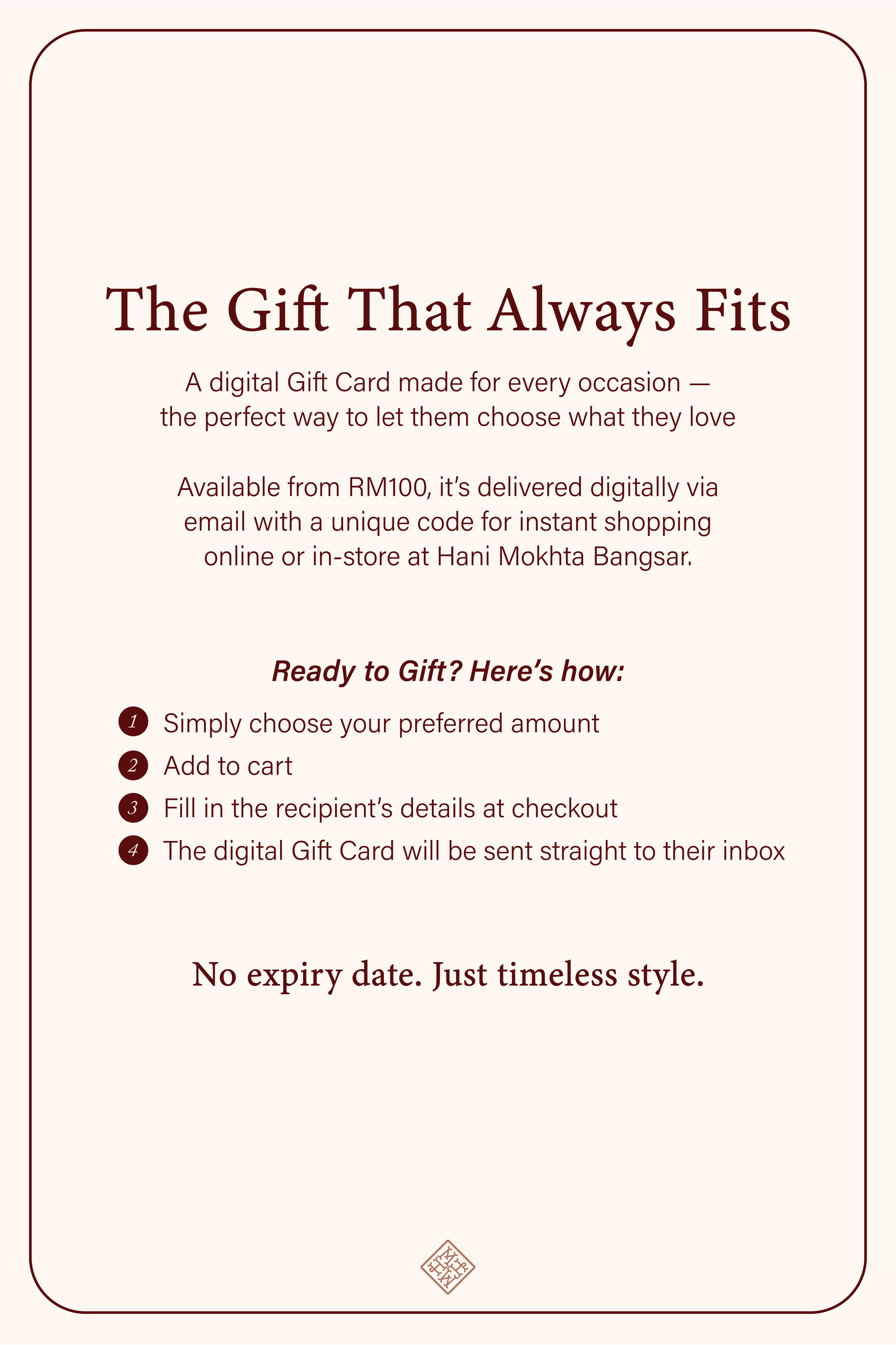 🛍️ Redeem online or in-store at Hani Mokhta Bangsar